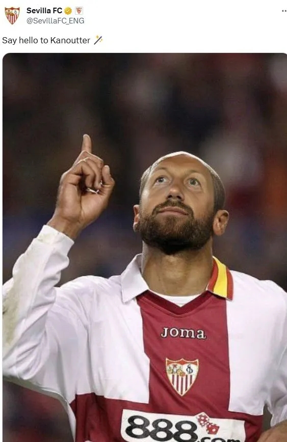 而塞维利亚俱乐部也加入了这场玩梗:他们在官方社媒中贴出了一张同是赛维、西汉姆两队旧将的卡努特的相片,并将他的脸P成了波特。