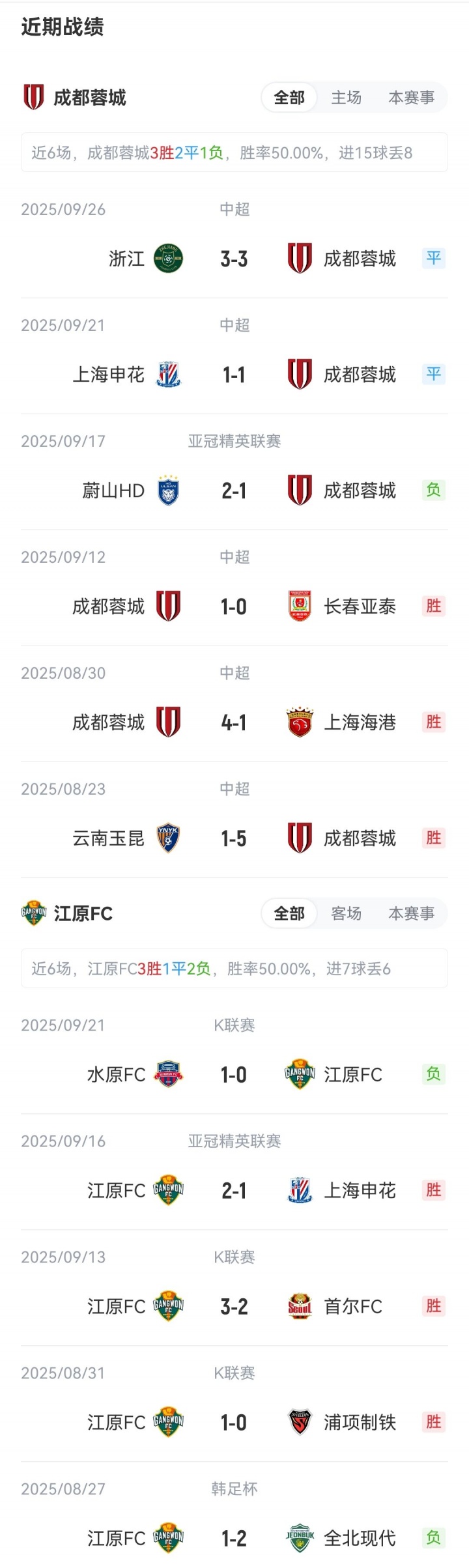 本场比赛是成齐蓉城首个亚冠正赛主场。蓉城首轮客场不敌蔚山HD,暂名次亚冠第8;江原FC主场2-1校服上海申花,积3分名次亚冠第4。
