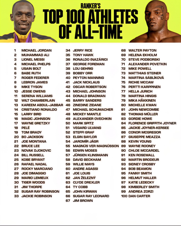 11月02日讯 外媒Global Statistics排历史百大通顺员,梅西第3,仅次于乔丹和拳王阿里。足坛9东说念主上榜,仅梅西插足前10,C罗第14、贝利第18、大罗第36、皆达内第46。