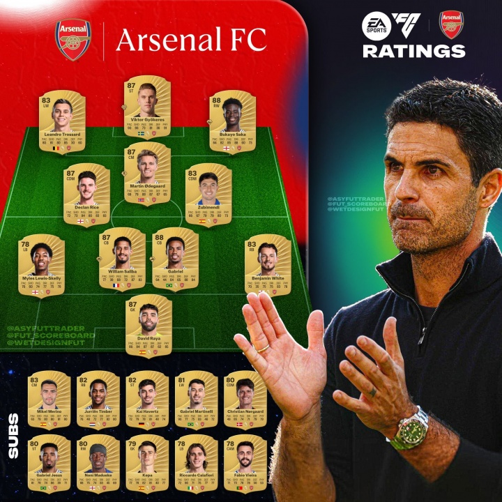7东谈主87+!EAFC26阿森纳球员评级:萨卡加布88,约克雷斯、厄德高87