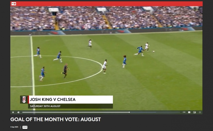 09月06日讯 富勒姆官方发布8月最好进球投票,对阵切尔西被吹进球被列入候选。