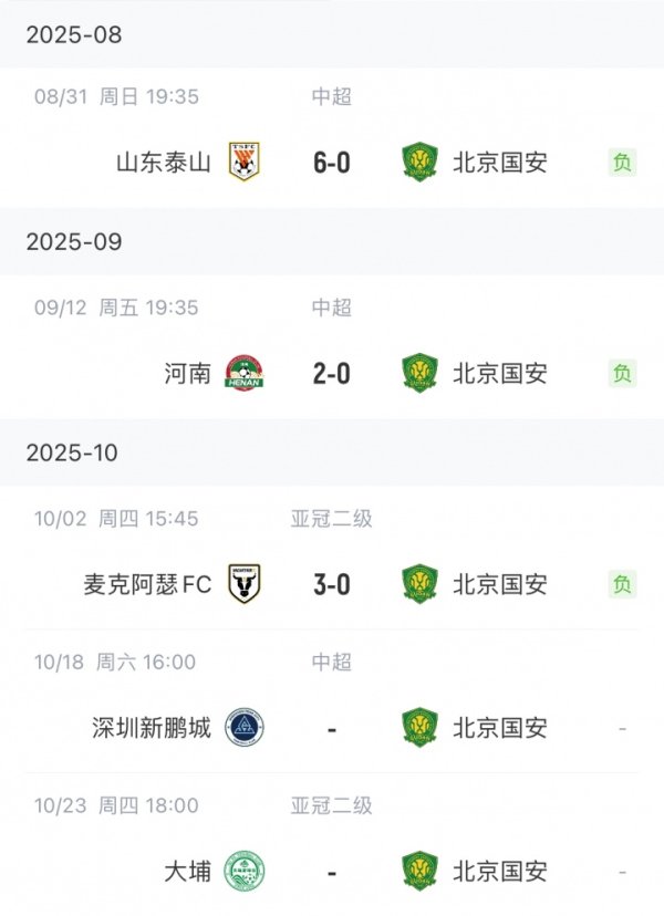 国安客场已遭3连败,而后还将连结作客挑战新鹏城和大埔