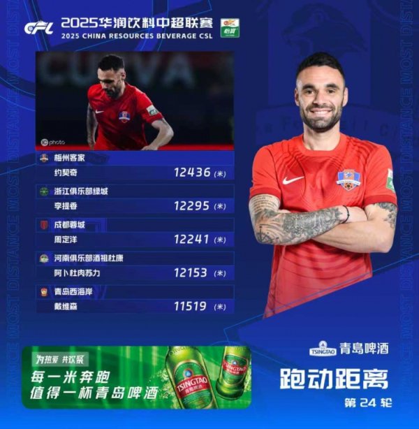 10月5日讯 中超联赛第24轮的补赛适度后,官方公布了本轮的跑动距离榜。排在本轮跑动榜榜首的是梅州客家外助约契奇,他的跑动距离为12436米。 排在约契奇之后的,是浙江队的李提香、成齐蓉城的周定洋和河南队的阿卜杜肉苏力,这4名球员的跑动距离齐跳跃了1.2万米,且互相之间差距不大。 排在本轮跑动榜第5位的,是青岛西海岸外助戴维森,他的跑动距离为11519米。值得一提的是,戴维森亦然本轮跑动榜前5位中惟逐个名报复型球员。......查看更多