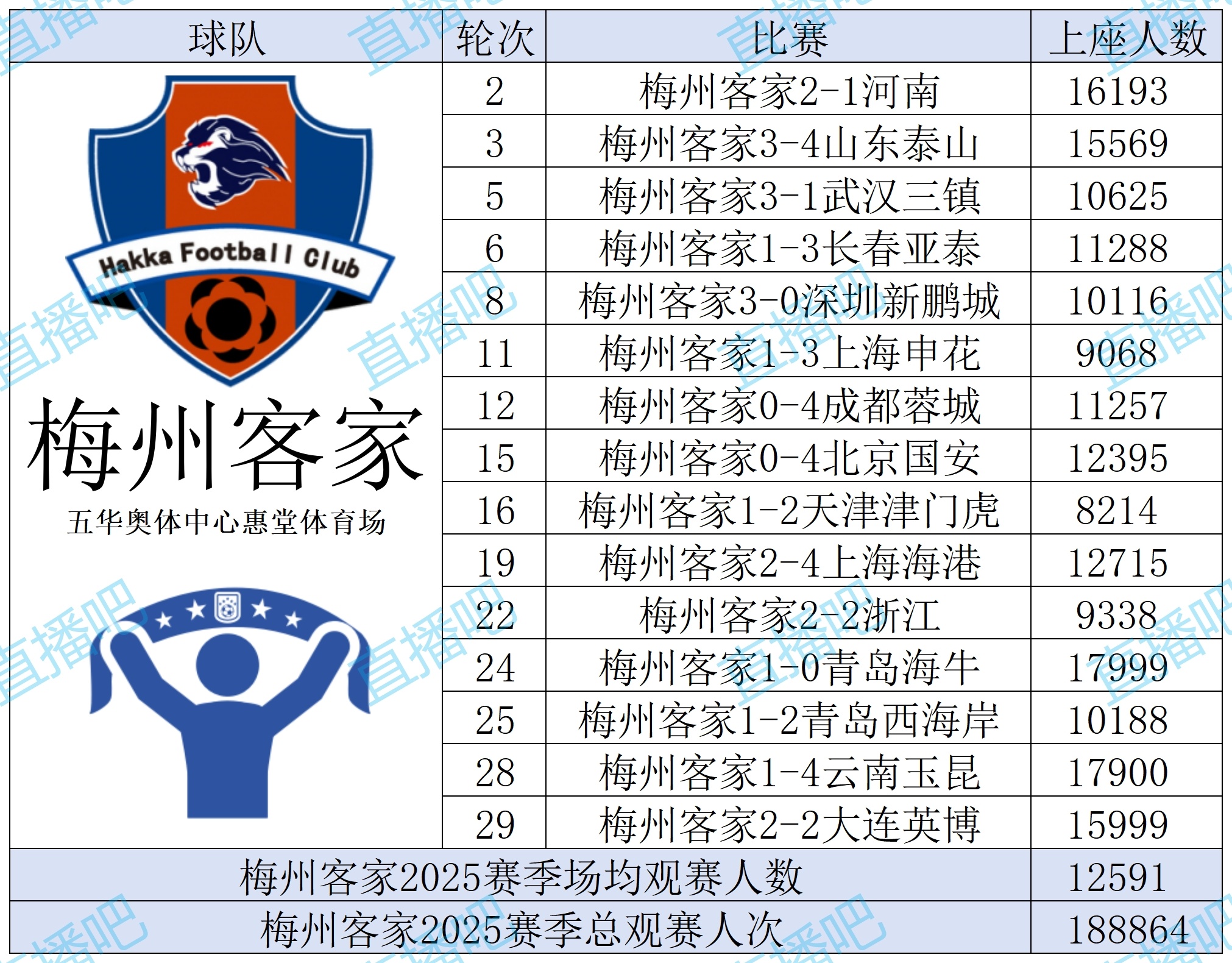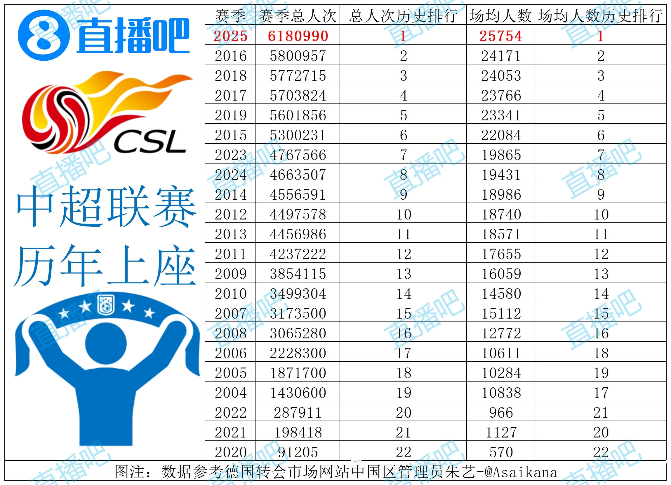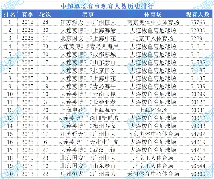那么2025中超,总不雅赛东说念主次是若干?16支球队的主场上座情况若何?2025赛季最热主场是那儿?最多上座比赛是哪场...小吧接下来将会从不同维度进行解答。