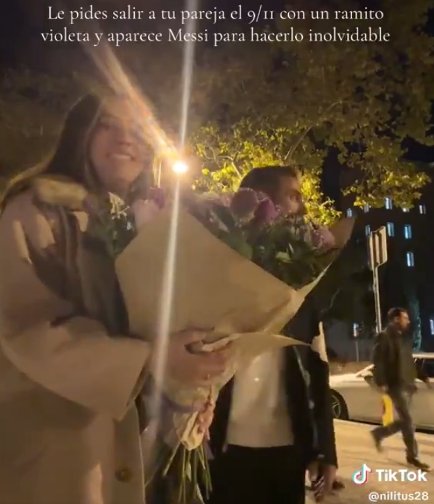 而TikTok上,一双情侣在拍摄网络视频时随机将梅西也录入其中。当二东谈主甜密地在镜头前展示鲜花时,梅西如同无为路东谈主一般从两东谈主死后走过,身旁也只消两位随行东谈主员。直到他依然走过,这对情侣似乎才重大到刚才流程我方死后的竟是梅西。