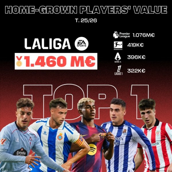 西甲定约近日发布了一份对于旗下俱乐部青训体系及原土培养球员的经济与竞技价值分析论述。论述显露,西甲青训球员身价呈稳步飞腾趋势,以14.6亿欧元的总商场价值领跑欧洲其他顶级联赛。同期,西甲定约亦然原土青训东谈主才使用率最高的联赛。2024/25赛季,俱乐部青训建立球员的出场工夫占比达19.8%,该数据同样位居欧洲首位。 分析论述指出,青训学院已成为西甲定约的政策支撑,这一可捏续发展阵势不仅擢升了赛场上的竞技服从,也优化了俱乐部的财务发扬,进一步寂静了西甲当作人人足球东谈主才培养......查看更多