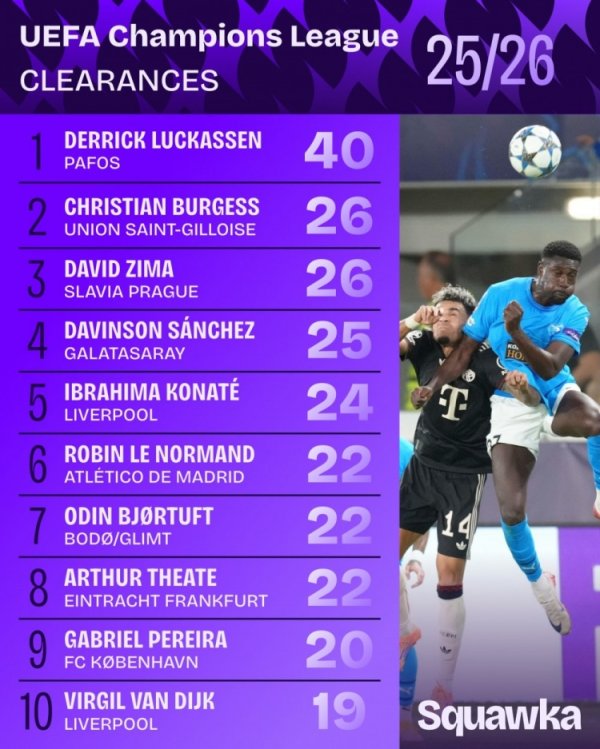 本赛季欧冠突围榜:卢卡森40次断崖式提高,科纳特范戴克上榜