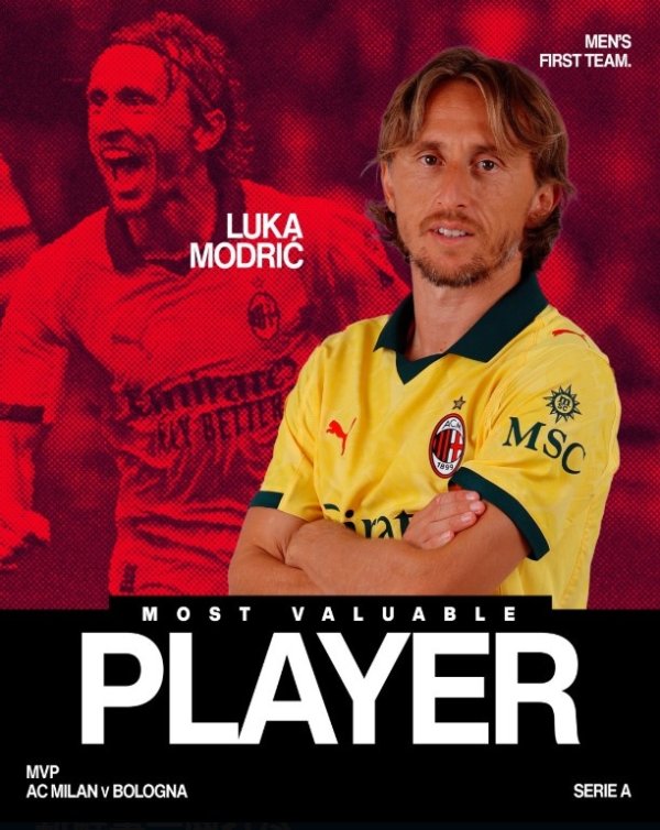 打进唯独进球,40岁莫德里奇当选米兰1-0博洛尼亚队内最好