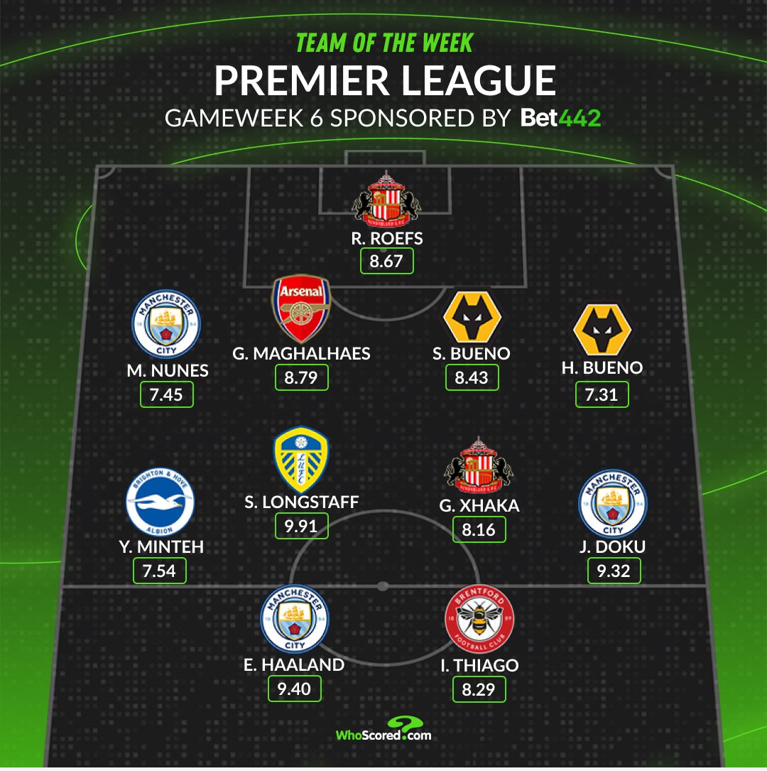 Whoscored英超第6轮最好声势: 哈兰德、加布领衔, 多库入选