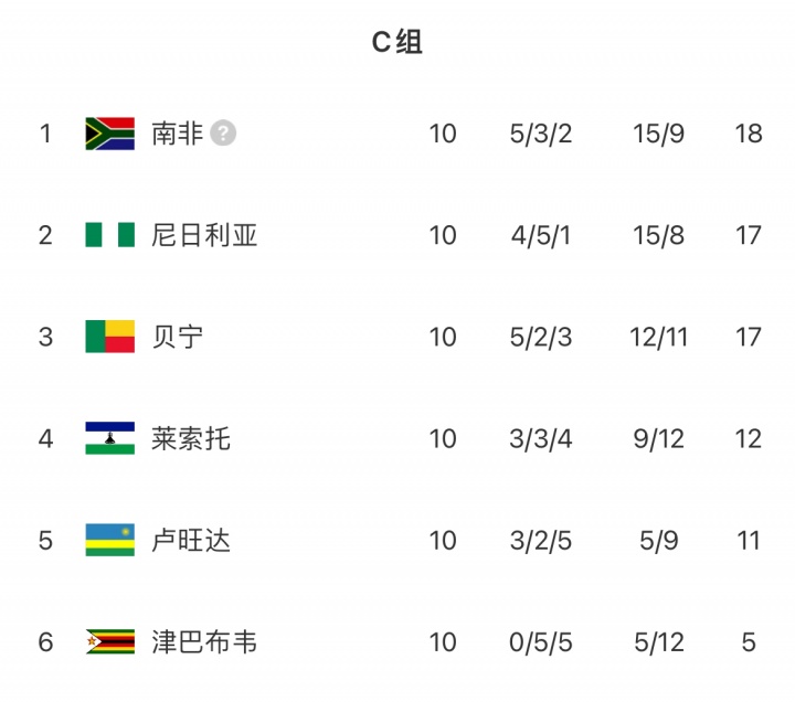 但由于南非3-0驯顺卢旺达,尼日利亚只能屈居C组第二,当今只能通过参与附加赛来争取2026寰宇杯的限额。