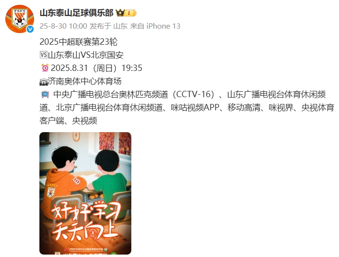 本场赛前,山东泰山俱乐部官方曾发布官方海报,主题为《好勤学习,天天朝上》,海报中身着橙色一稔的小同学为身着绿一稔的同学素养,绿一稔同学的抽屉里还被塞了三个橙色的球。赛后再看,这张海报反而别有一番意味。