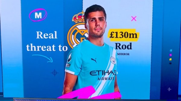 😅英媒小报:皇马瞎想“突袭”引进罗德里,可能报价1.3亿英镑