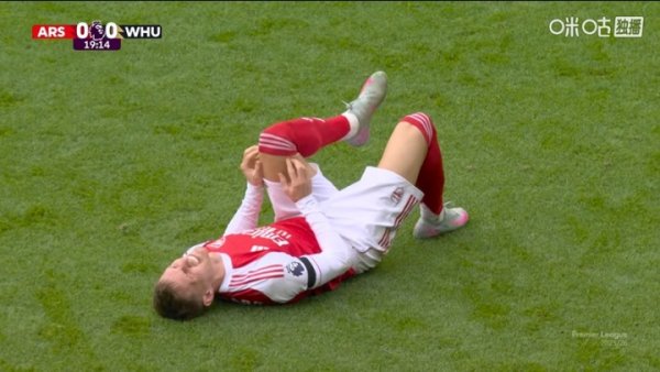 枪迷揪心!厄德高开场20分钟膝盖与敌手碰撞,两度躺在方位内