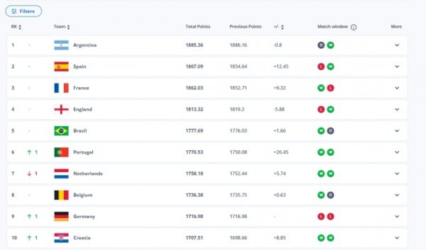 已2年半排天下第一!阿根廷世初赛告负,下期名次将降至FIFA第三
