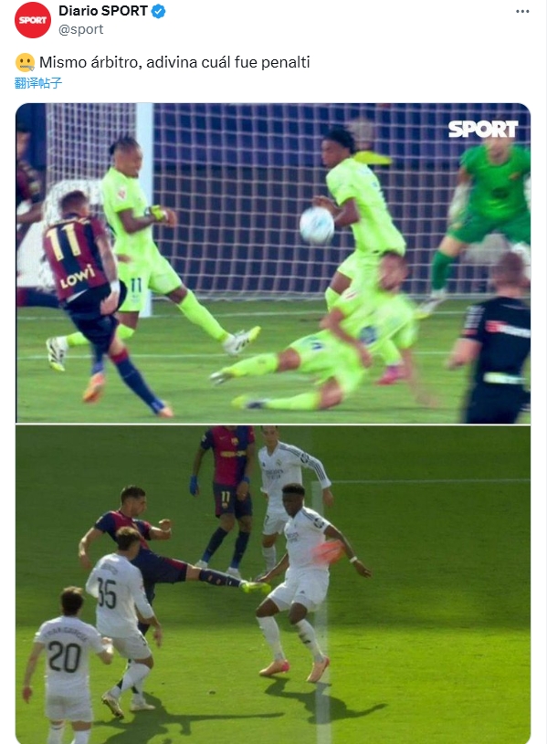 每体晒此前琼阿梅尼手球争议质疑:归并个裁判,猜猜哪个是点球?