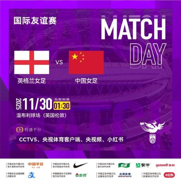 对决温布利! 国外足球友谊赛 ⚽ 英格兰女足 VS 中国女足 ⏰ 北京时代2025年11月30日凌晨01:30 🏟️ 温布利球场 锁定以下转播平台,扫数为女足密斯们加油!......查看更多