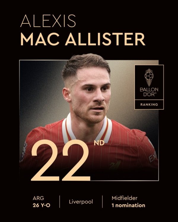 利物浦仅花4200万欧!26岁麦卡初次入选金球排22 身价上亿+2年2冠